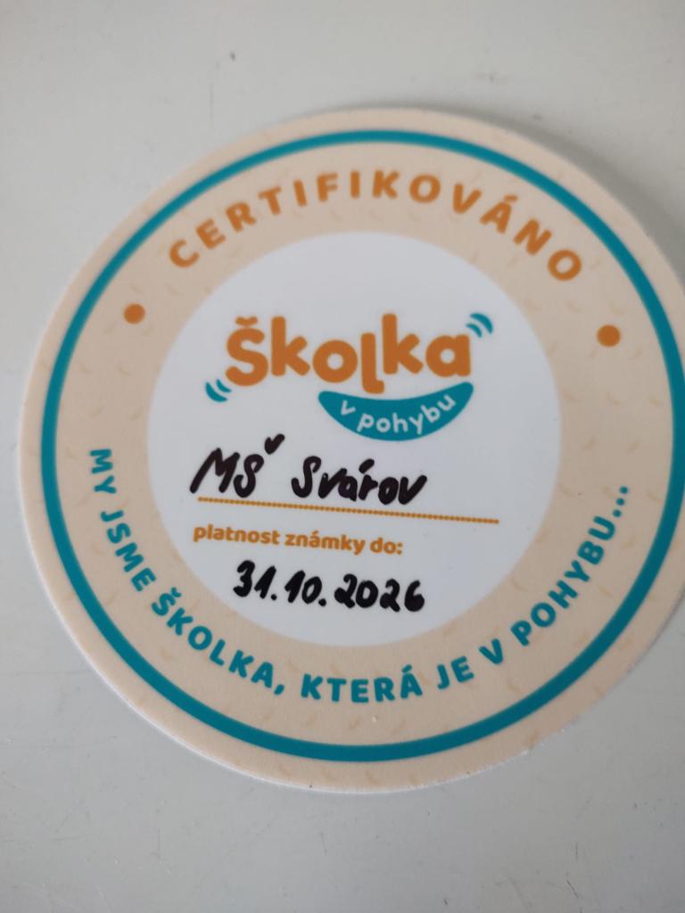 Naše školka získala certifikovanou značku pohybové školky. Tento celorepublikový projekt sdružuje školky, které se chtějí s dětmi více hýbat.