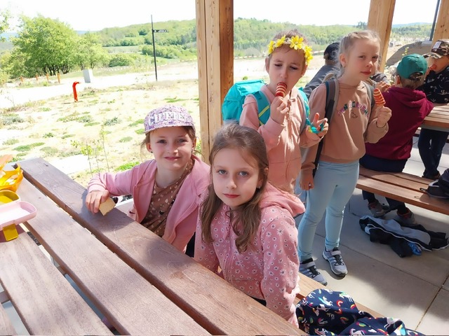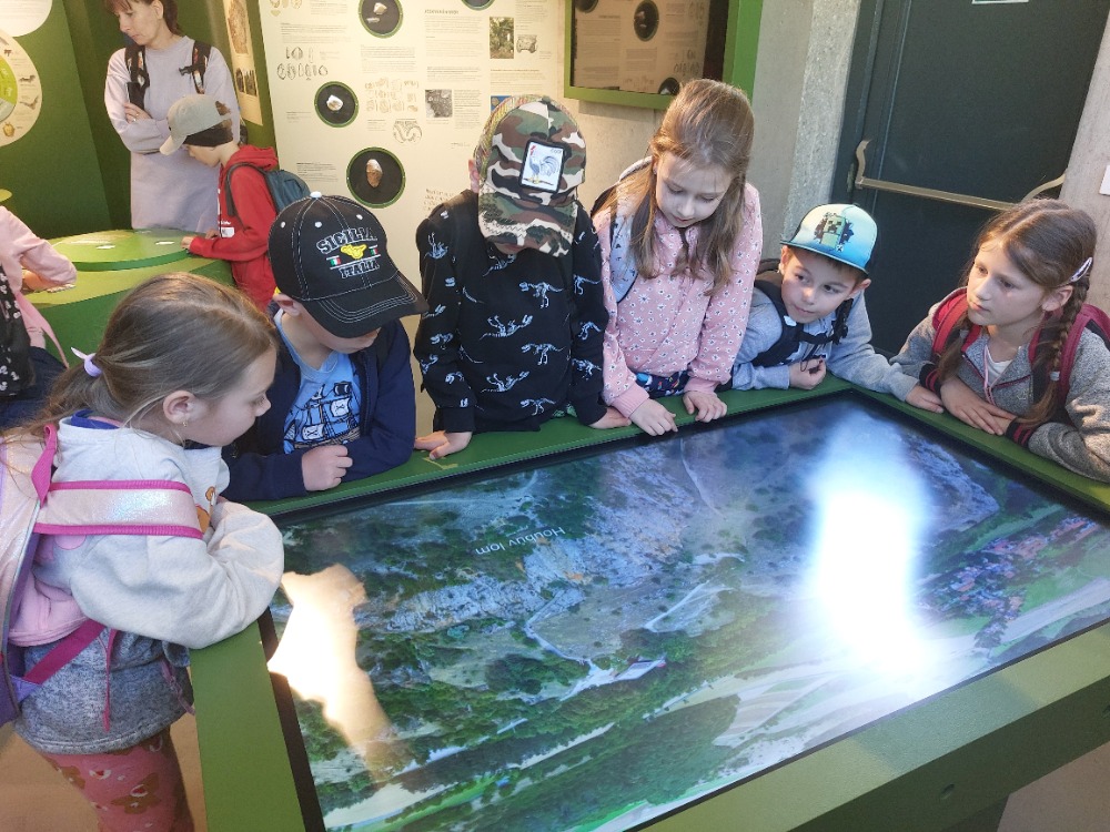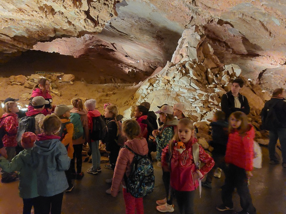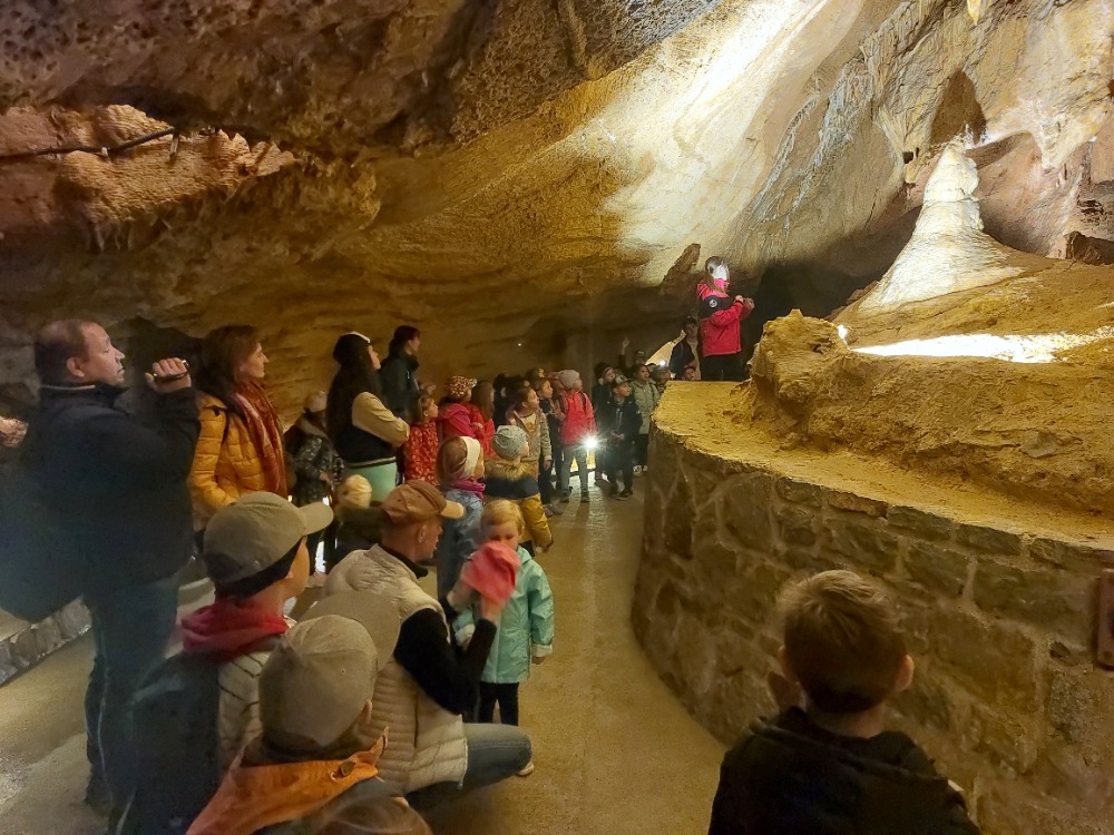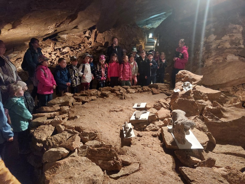 Poslední dubnovou sobotu se družina vypravila na výlet do Koněpruských jeskyní. Autobus čekal ráno před školou, děti se rozloučily s rodiči a vyjelo se. Na místě jsme si prohlédli jeskyni. Paní průvodkyně hezky vyprávěla a ukázala, jaká je v jeskyni tma, když zhasla. Po prohlídce jsme si hráli v novém Domě přírody, kde bylo spoustu interaktivních her. A samozřejmě oběd, nákupy a osvěžení nanukem. Poté jsme prošli naučnou stezku a zastavili se v lomu. Spousta z nám měla štěstí a nacházela zkameněliny. Výlet se vydařil, bylo krásné počasí, získali jsme spoustu nových informací, dojmů a zážitků. Všem se nám to moc líbilo.