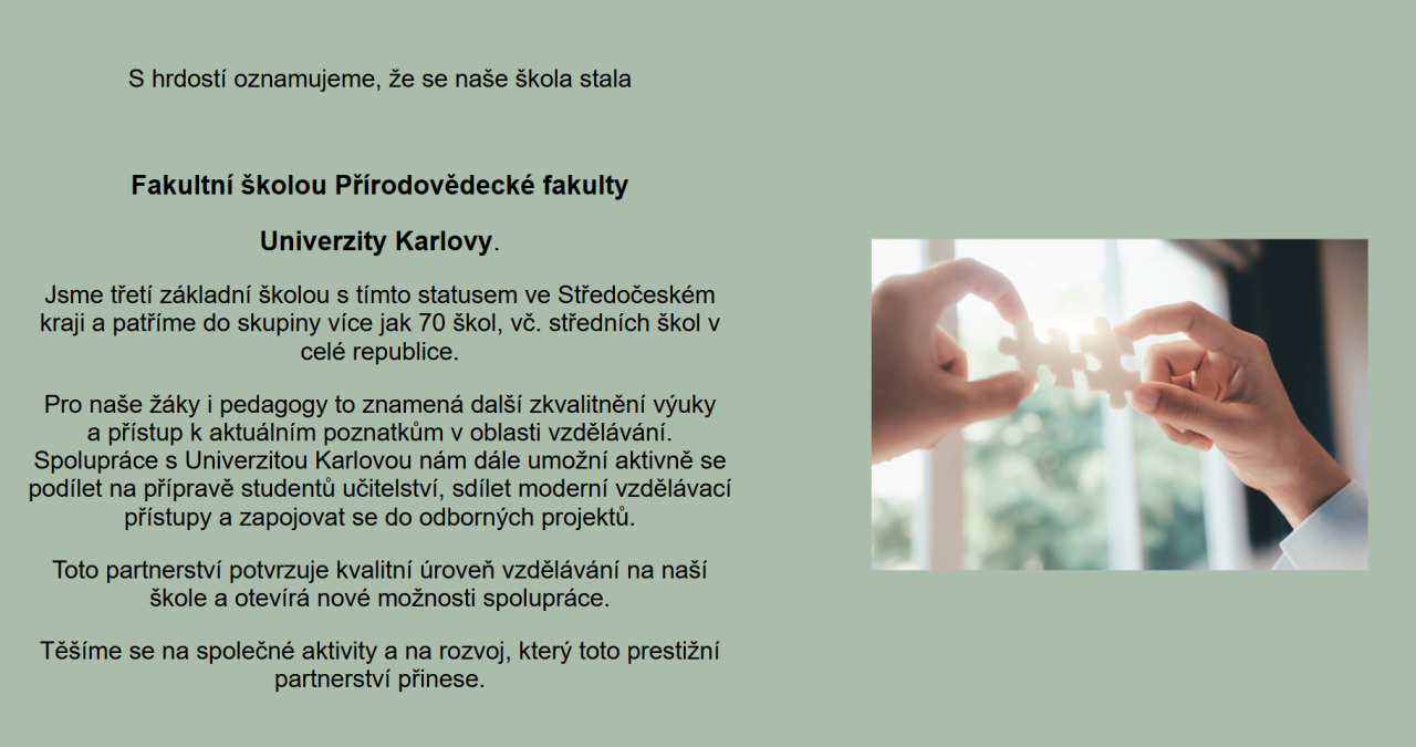Základní škola a mateřská škola Svárov se stala Fakultní školou Přírodovědecké fakulty Univerzity Karlovy.